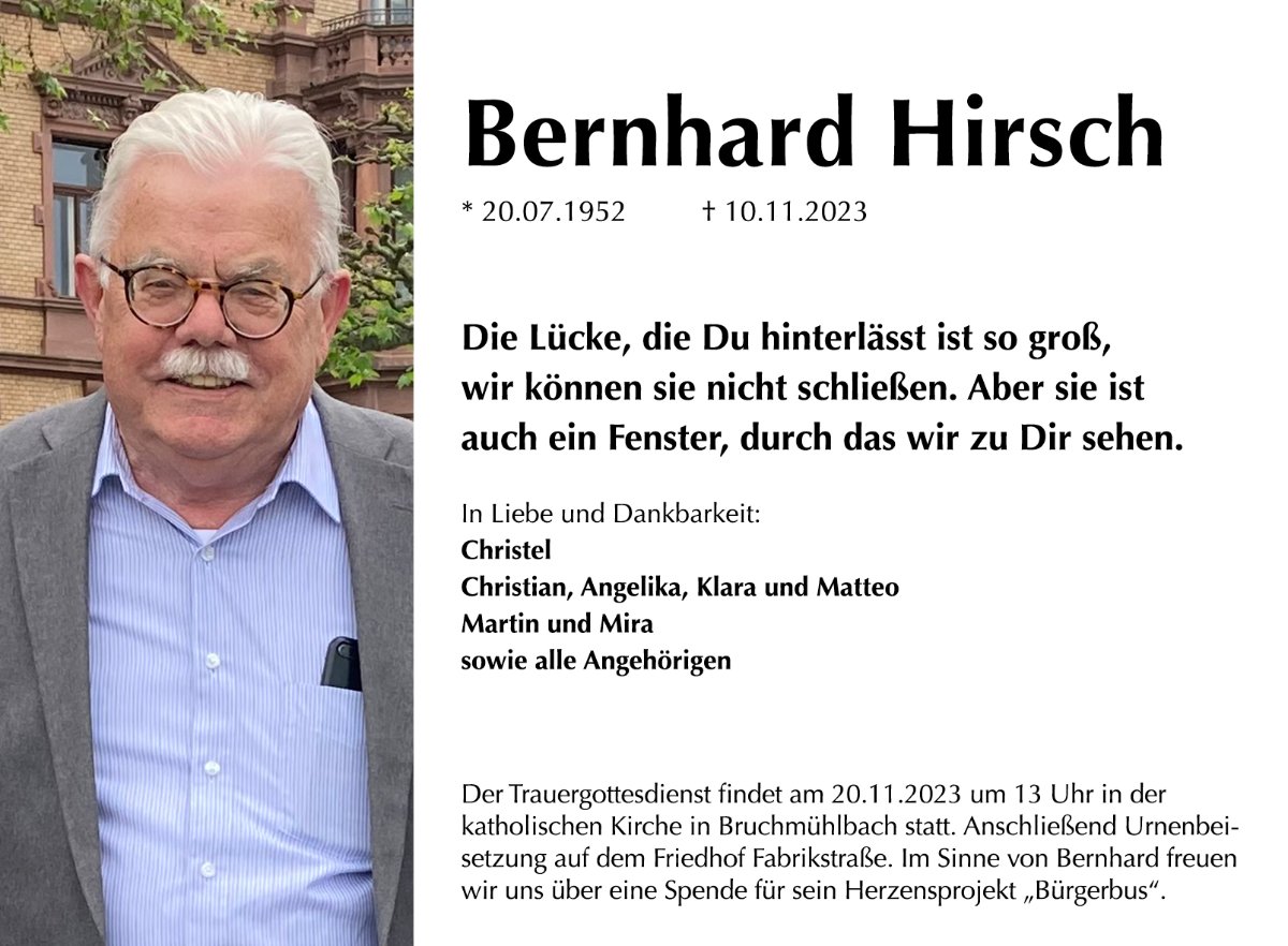 Als ehemaliger Mitlehrling von Bernhard möcht ich Ihnen mit nachfolgenden Worten Trost spenden:
