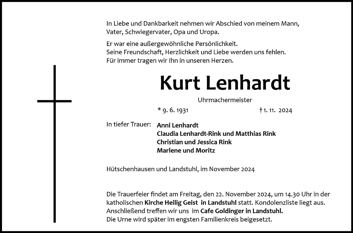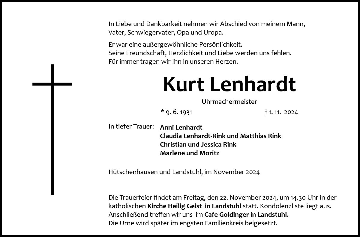 gestorben am 1. November 2024 in Ramstein-Miesenbach