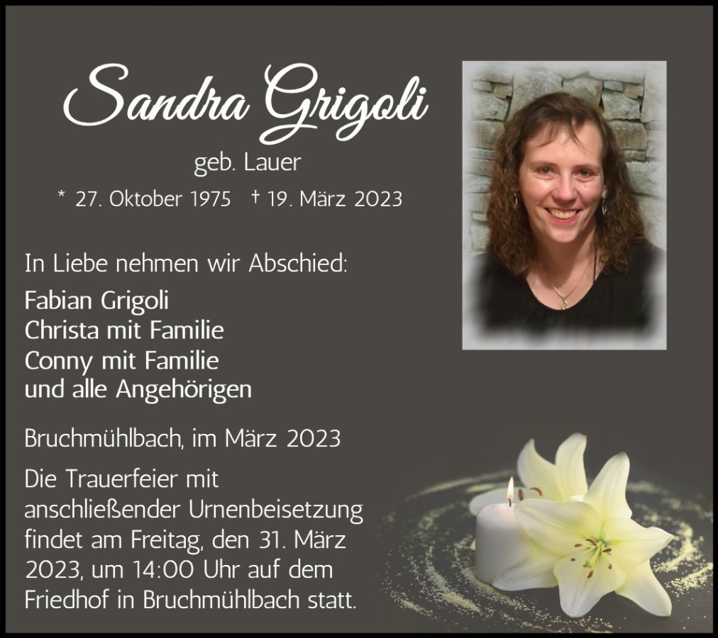 Trauerfeier Urne anschließend Beisetzung, Friedhof Bruchmühlbach
