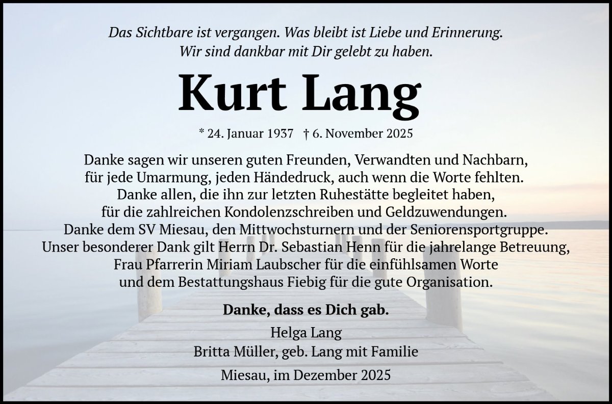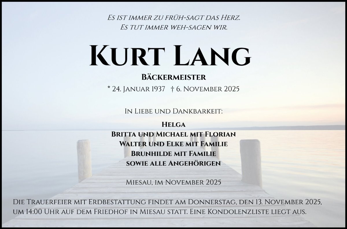 unser aufrichtiges Beileid zum Tode eures lieben Verstorbenen. Gerne denken wir an gemeinsame Gespräche und Erlebnisse mit Kurt Lang zurück.